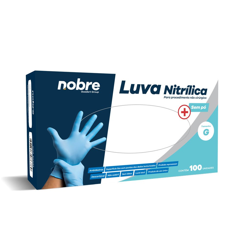 Luva Nitrílica s/ Pó Azul - Proced. Não Cirúrgico - c/100unid. - Nobre (P, M e G)